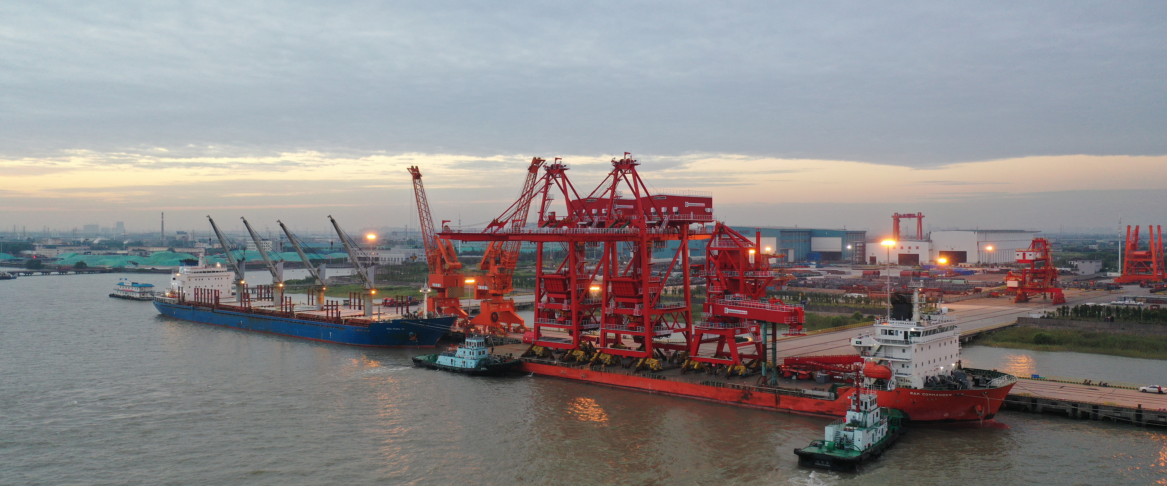 湘江之畔,華新機電大唐華銀株洲項目抓斗橋式卸船機近日完成首船接卸。